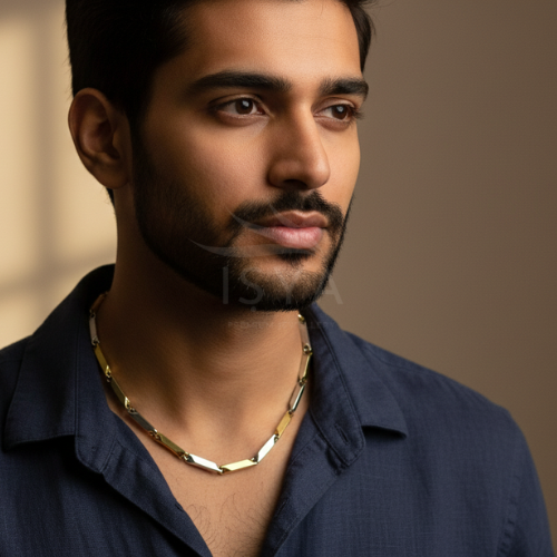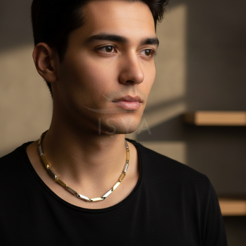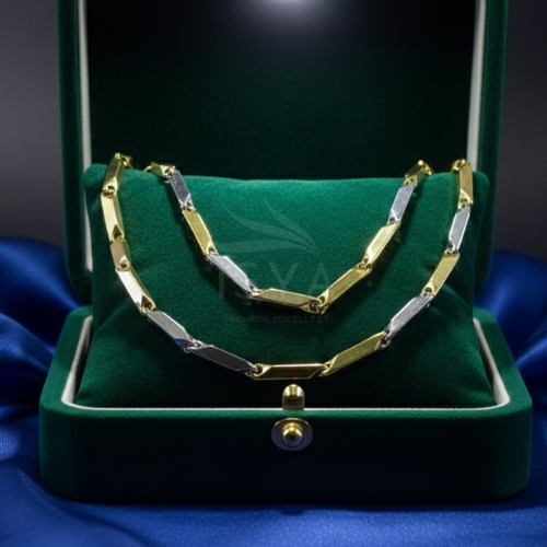 Add a touch of modern elegance with the Gold Plated Stainless Steel Bar Chain, styled with a polished bar detail. A sleek, versatile piece that enhances any look with subtle sophistication.