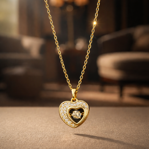 Golden Heart Sparkle Pendant Necklace is all about soft shine and big love energy. With its radiant heart design and subtle sparkle, it’s the perfect everyday statement that goes from casual fits to special moments—effortlessly cute, endlessly classy.